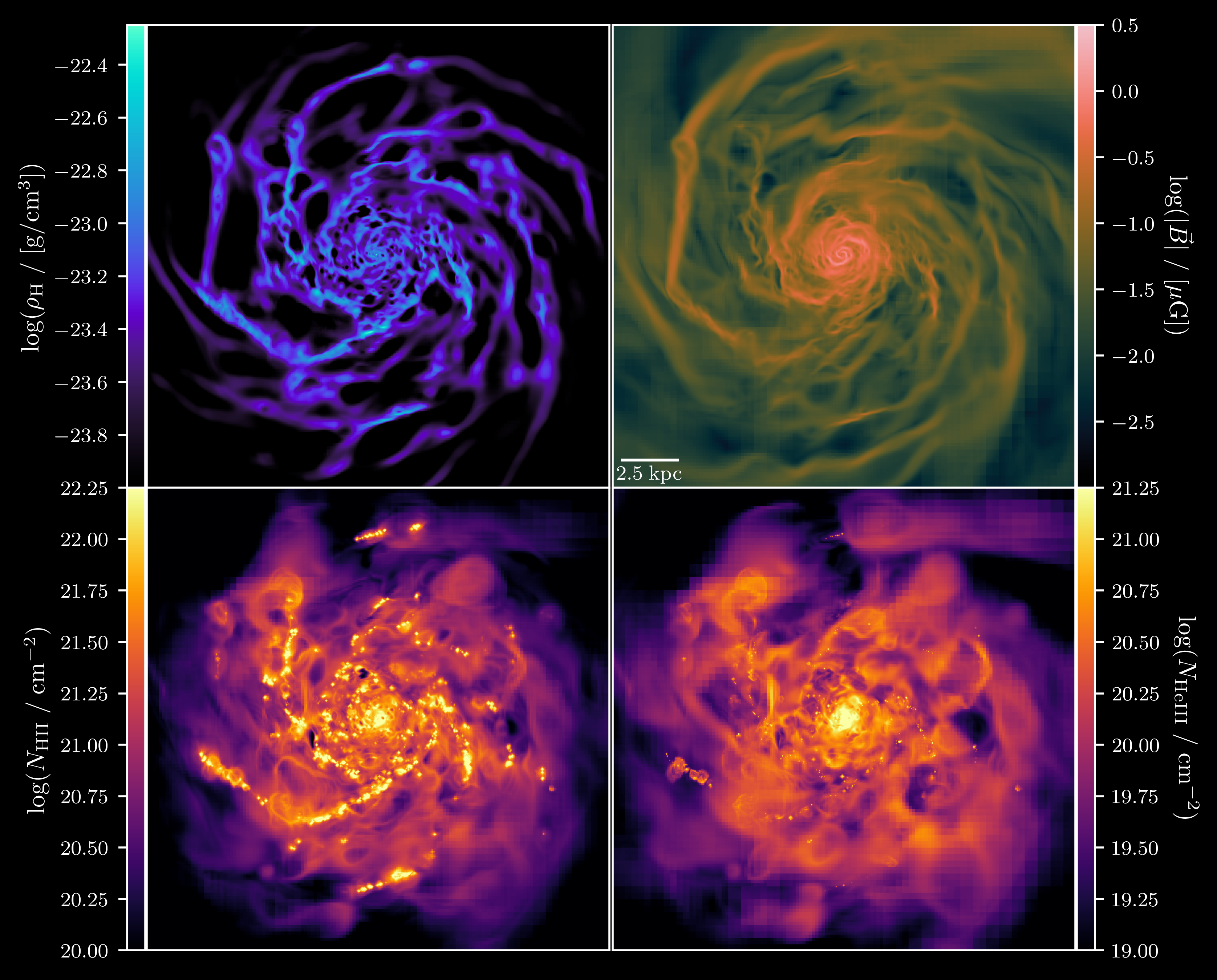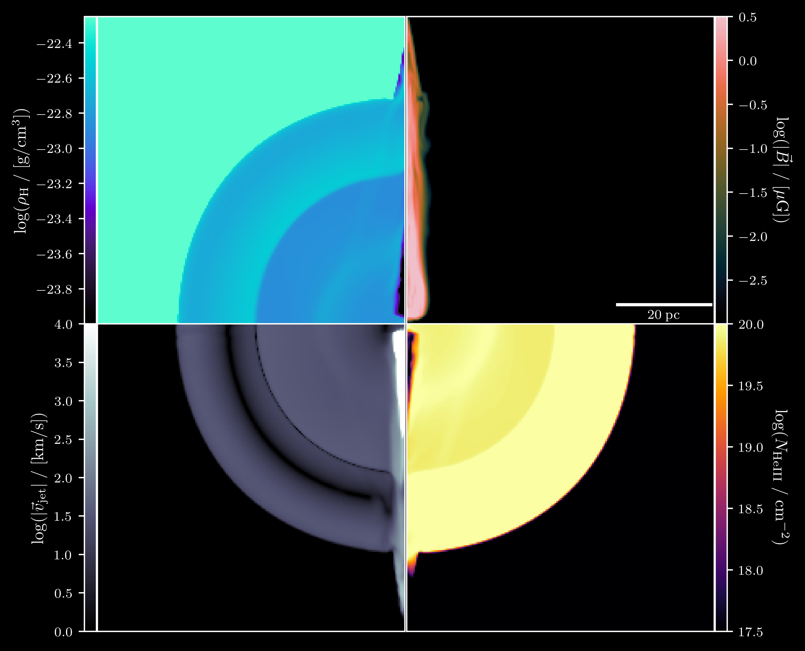 I use supercomputer-run simulations and the James Webb Space Telescope to study how the ionising radiation, magnetic fields, and kinetic feedback of the first stars and active black holes affected the interstellar medium and spectroscopic properties of galaxies in the early Universe.